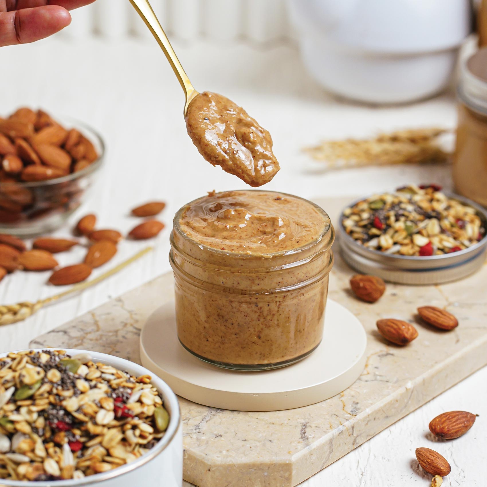 Create almond magic! Spread on toast with fruits, blend in smoothies, or make creamy dressings. Perfect for nutrient-rich snacking!
