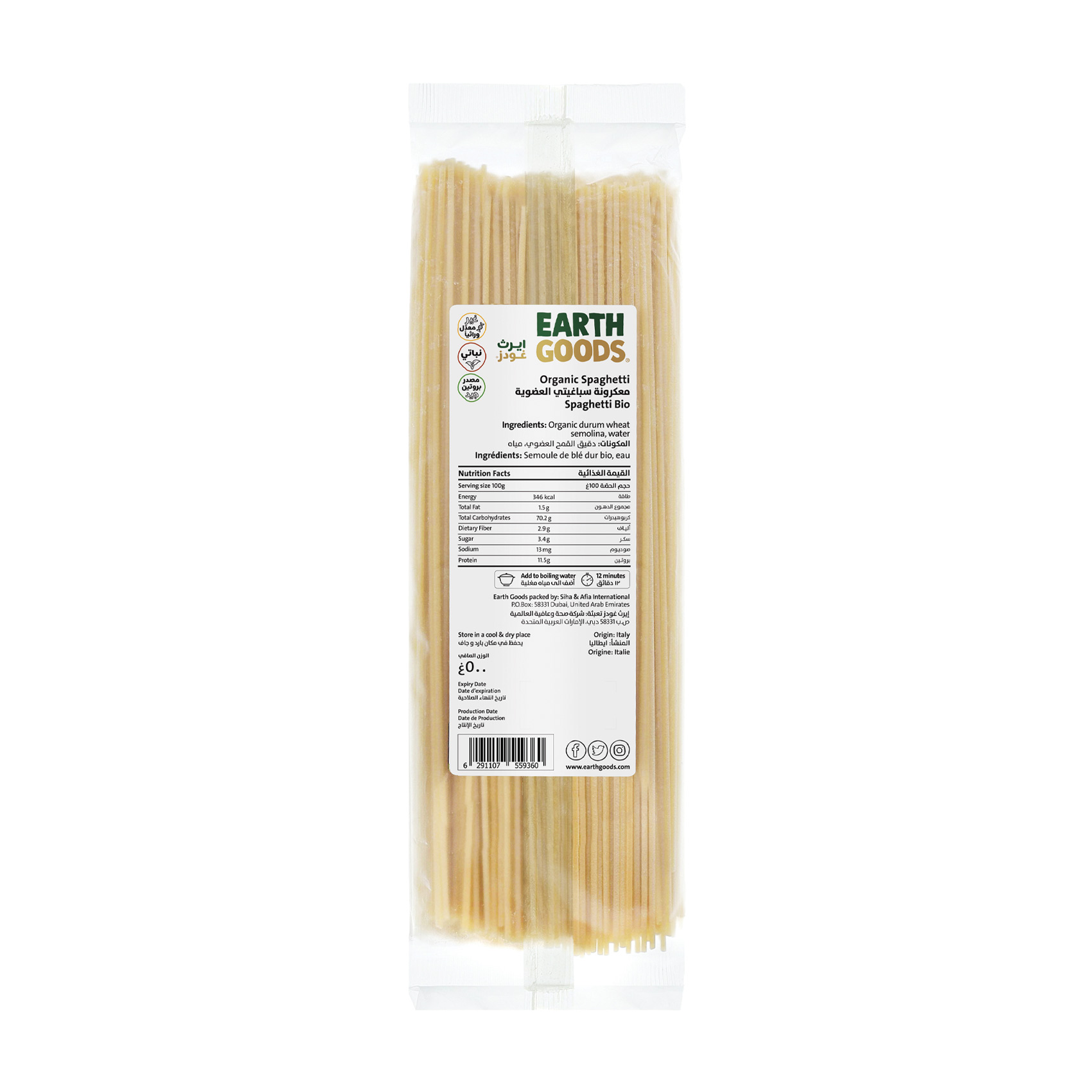 Organic durum wheat semolina, water